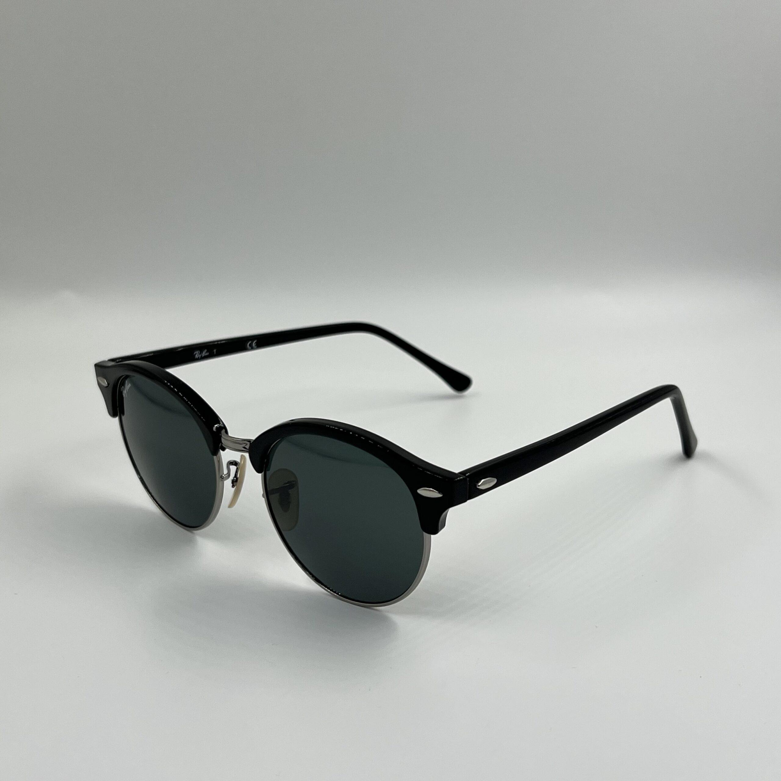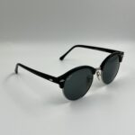 Tortoise frame with silver metal rims and green lenses — a refined Clubround style.