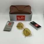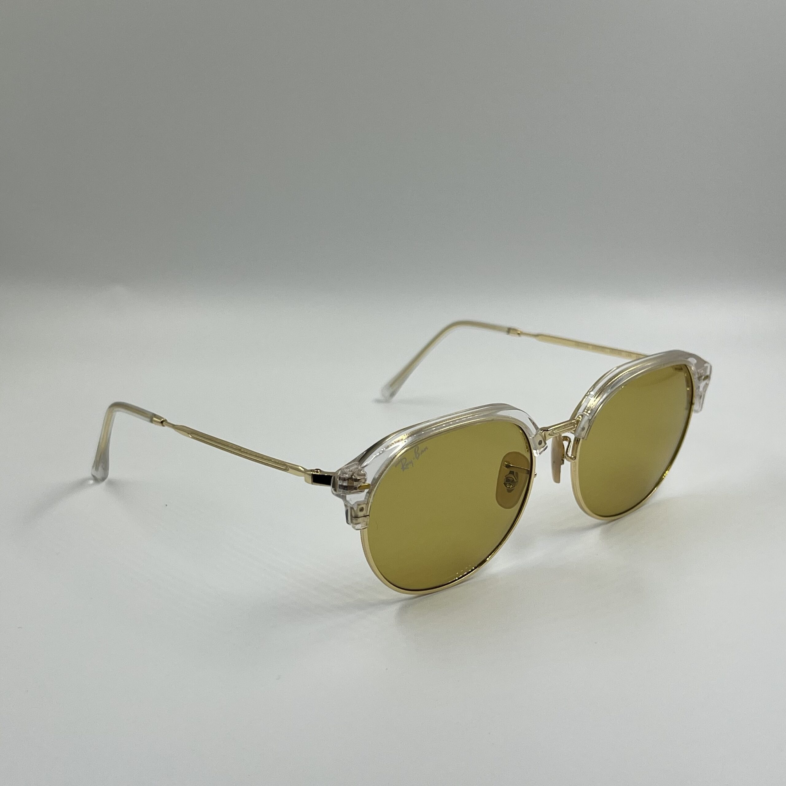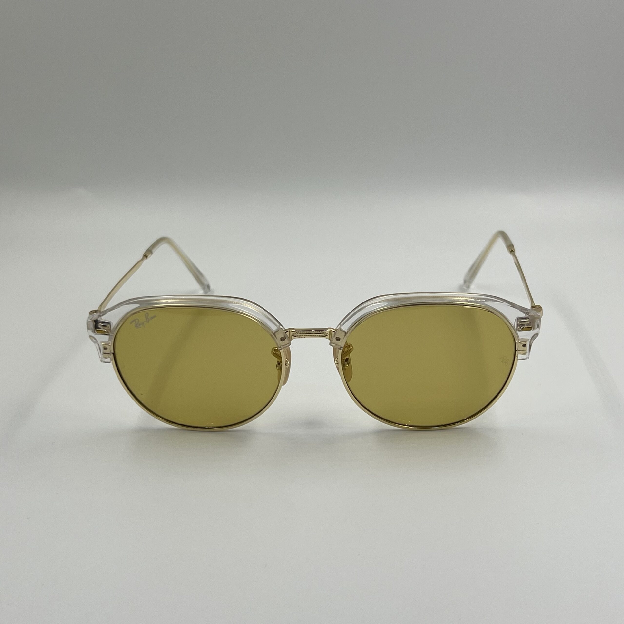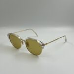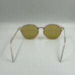 Clear acetate frame with gold metal details and yellow mirrored lenses.