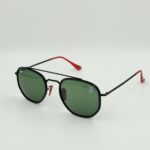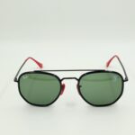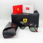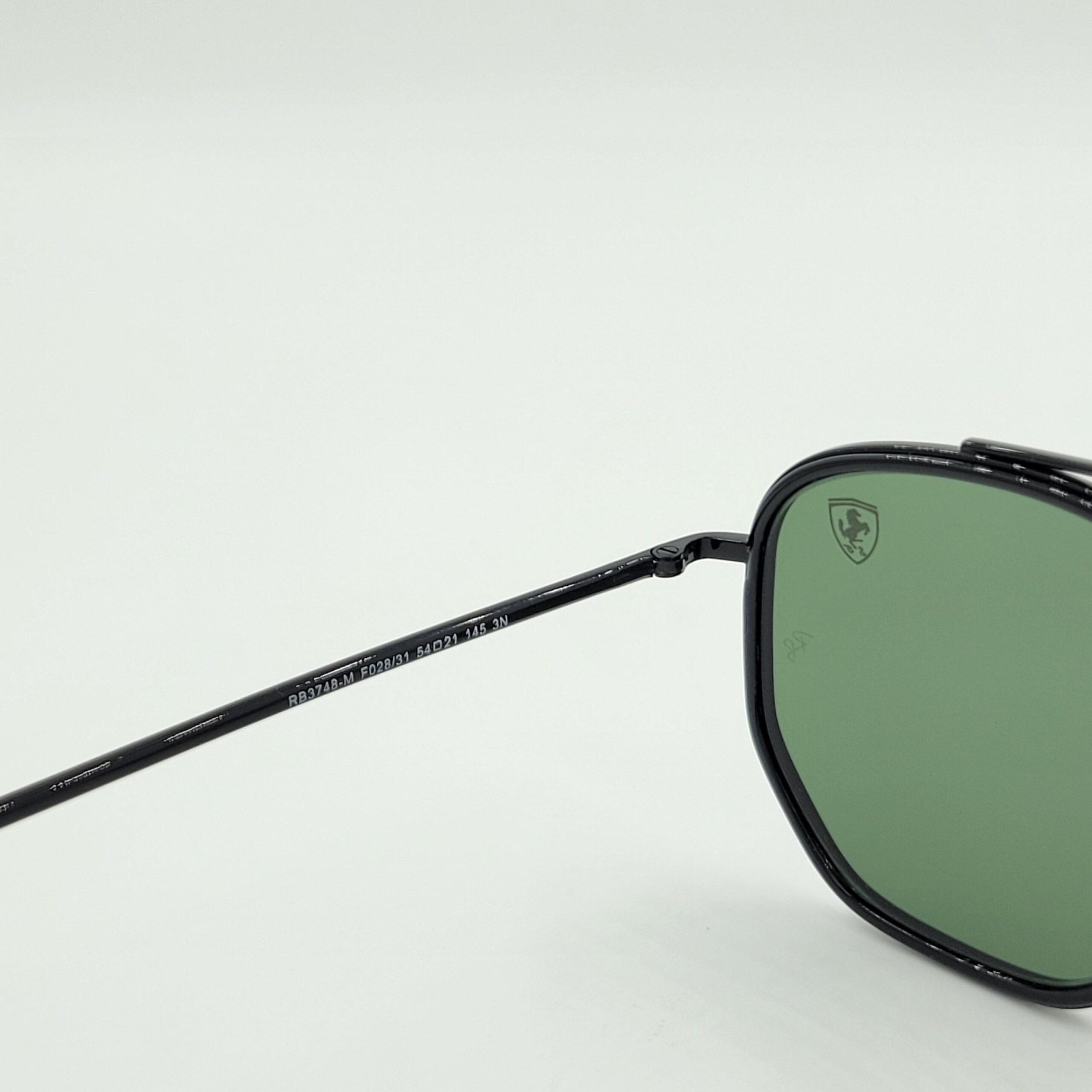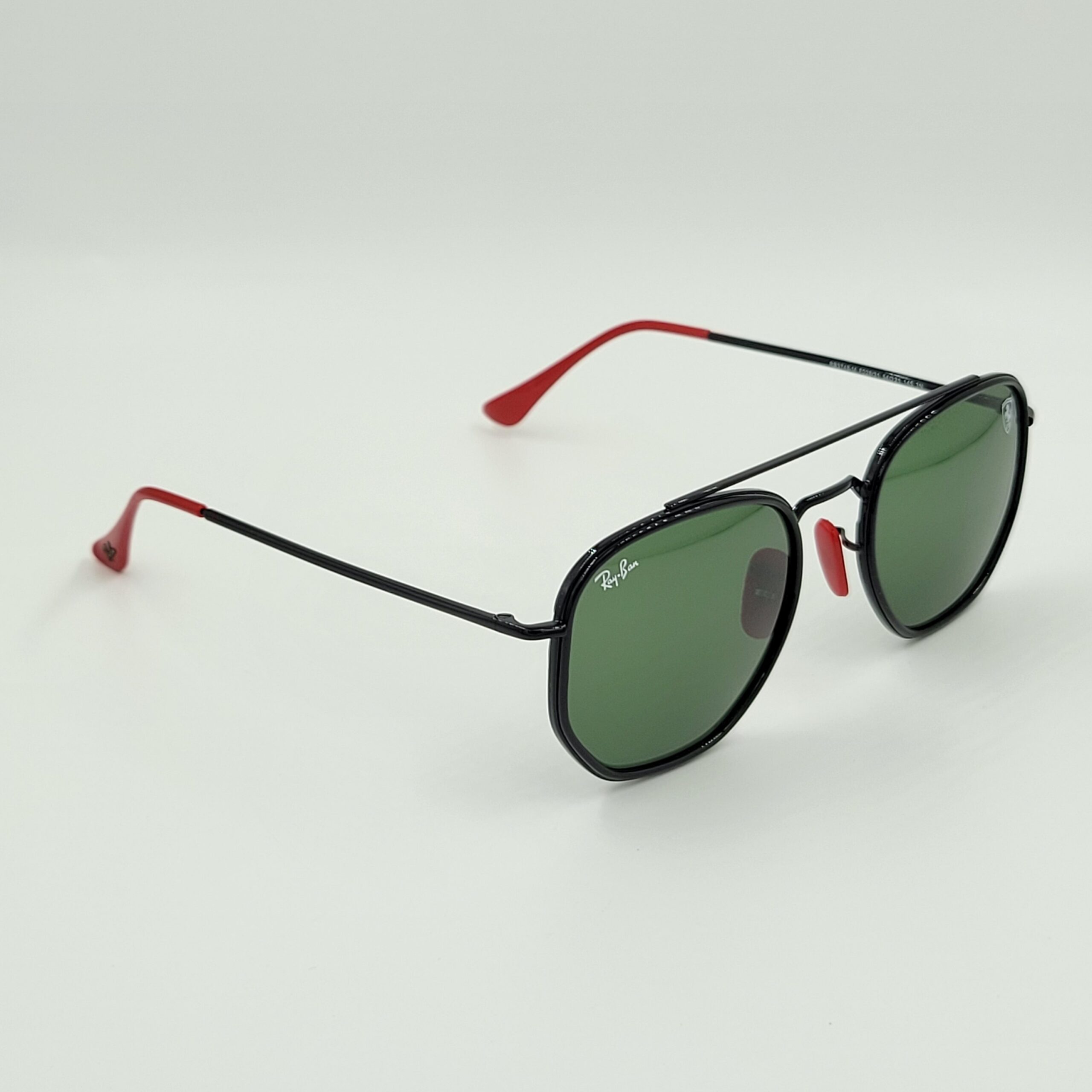Sleek black frame paired with classic green lenses and signature red Ferrari tips. A powerhouse of motorsport style and timeless elegance.